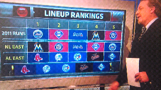 On Thursday's ESPN's Baseball Tonight Curt Schilling ranked the AL east teams (at producing runs) with Boston ranked first and Tampa Bay last. Immediately following this ranking Buster Olney, on camera, said to Schilling "You have lost your mind."
